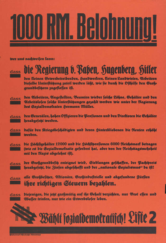 The poster was printed by the Offenbacher Abendblatt, a party-owned newspaper founded in 1874 which had to cease publication shortly after when the National Socialists came to power.