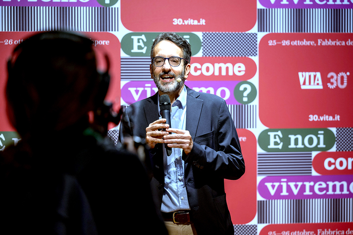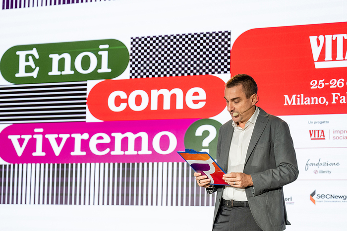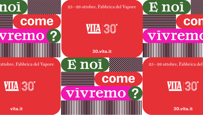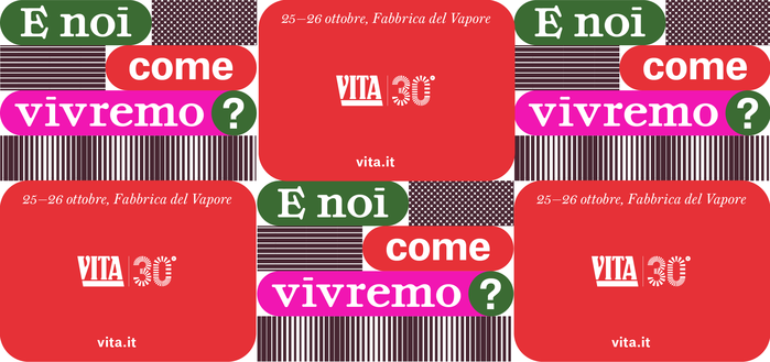 Visual identity for the “E noi come vivremo?” (“How will we live?”) festival, marking the 30th anniversary of Vita magazine. On 25 and 26 October 2024 at the Fabbrica del Vapore in Milan, a two-day event was held dedicated to imagining feasible solutions for a sustainable and socially just future. Thematic sessions addressed key issues of everyday life with contributions from many leading figures of our time: from education to healthcare, from investment to critical thinking.