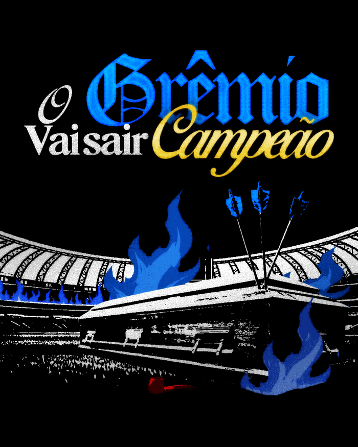 The title of the artwork, “O Grêmio Vai Sair Campeão” (“Grêmio will be champions”), references a traditional song sung by Grêmio supporters when the team is about to win a title.