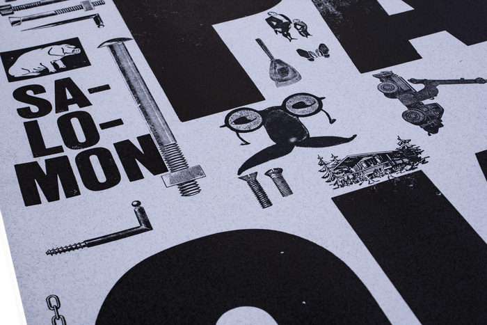 Letterpress poster in 70×100cm printed from traditional wood type (Dalmazia Serie C by Xilografia Italiana) in 50 Cicero (225 mm). Since I only have the set in uppercase, it is a bit hard to identify. Oh boy, how I would love these lower case sorts! But since I bought it from Italy, it makes sense that is by Xilografia Italiana.