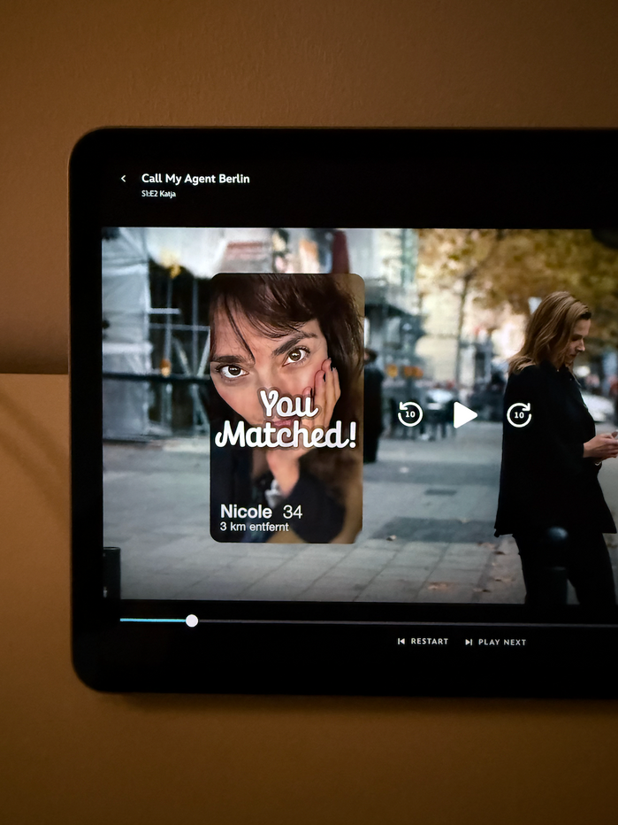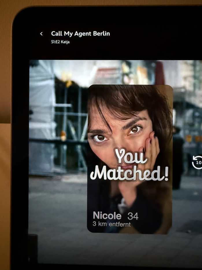 In the second episode of Disney+’s TV series Call My Agent Berlin, one of the main protagonists uses a dating app that tells her “You Matched!”. This notification is set in Finlay by supertype.