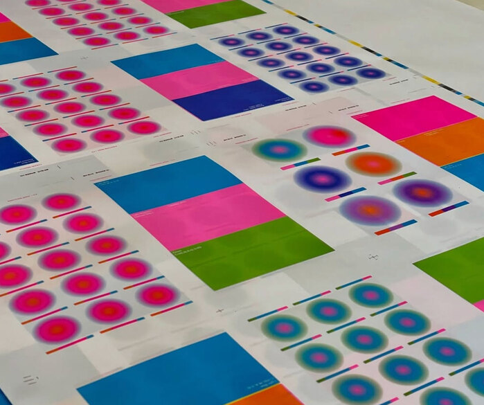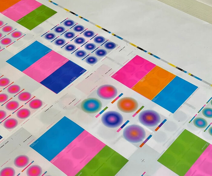 In response to the curatorial theme, graphic design studio nonplace developed a visual system founded on a series of radiant halos symbolizing spiritual energy. Their arrangement into modular structures expresses the organization of immaterial forces into the patterns and forms of art and techne, providing a flexible, transformable, and infinitely extendable visual system. (Text rephrased from nonplace)