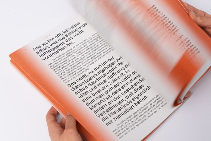 The book was designed by Marie Bauer, using Trax, paired with BBB Poppins. From her portfolio website (translated from German):