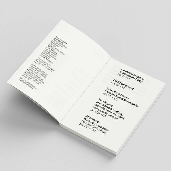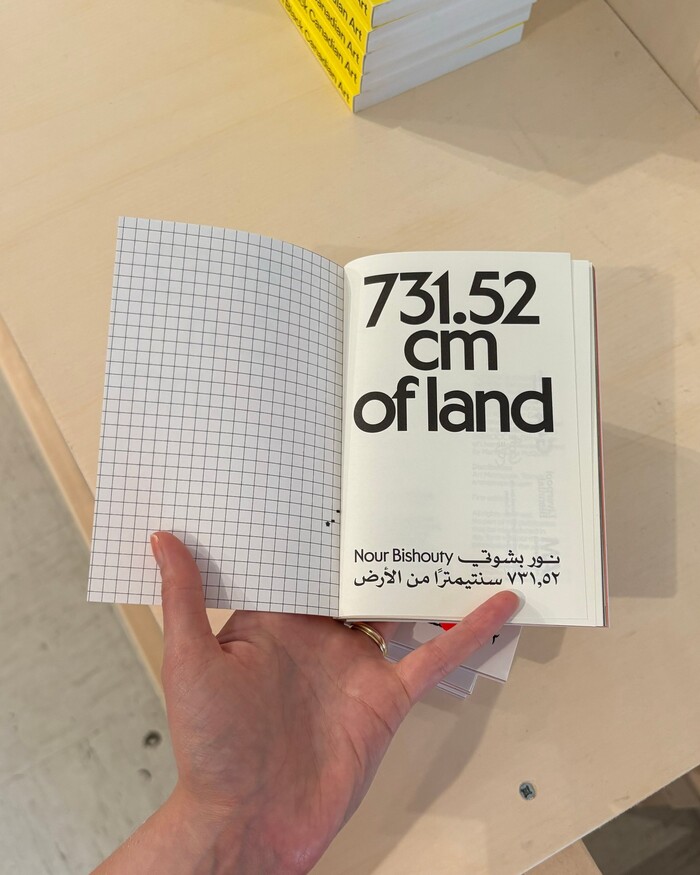 731.52 cm of land is a book by artist Nour Bishouty. The typeface used across the whole publication is Cortese Sans by Mark van Leeuwen, alongside SF Mada by Sultan Fonts for Arabic text.
