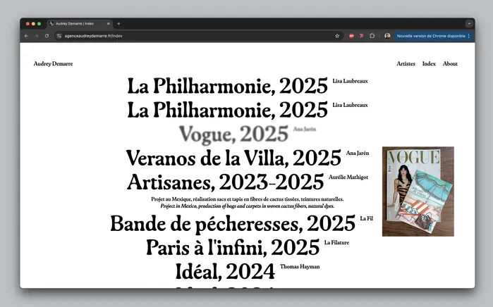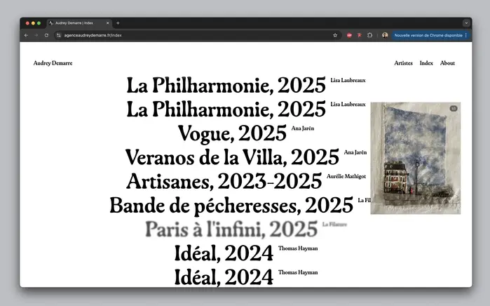 Gaya in use for the visual identity and website of the artist agent Audrey Demarre.