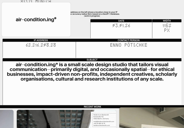 air–condition.ing* is a small scale design studio that tailors visual communication—primarily digital, and occasionally spatial—for ethical businesses, impact-driven non-profits, independent creatives, scholarly organisations, cultural and research institutions of any scale.