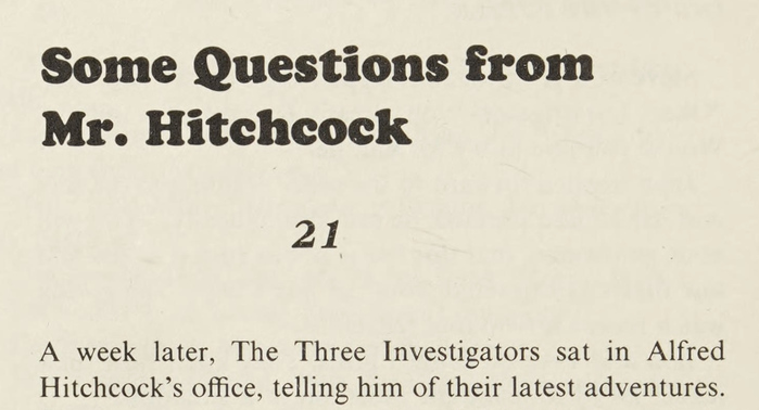 The Three Investigators is a juvenile detective book series, started by Robert Arthur in 1964. This book was written by Nick West, which is a pseudonym of Kin Platt (1911–2003). Harry Kane (1912–1988) provided the illustration. The series is continued to this day in Germany – under the title Die drei ??? – where it is particularly popular.