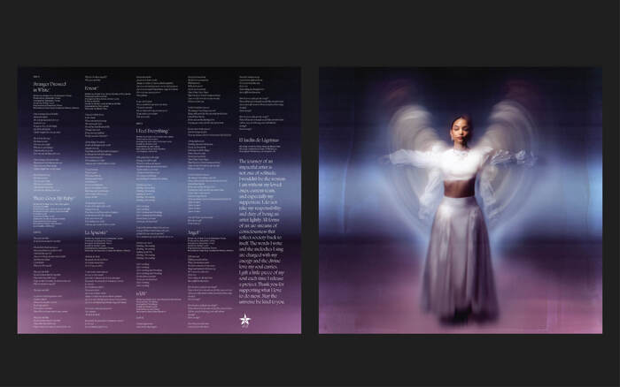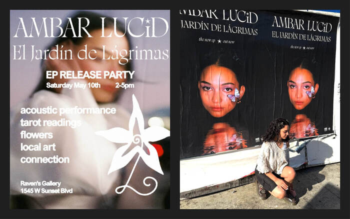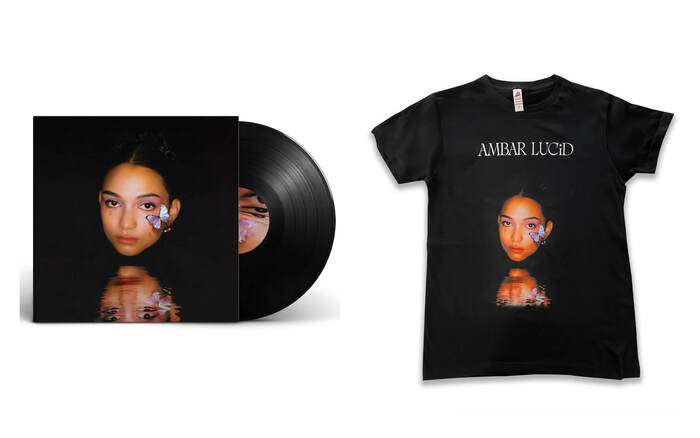 Ambar Lucid’s new EP is supported by a clear and cohesive communication strategy that extends beyond the music itself. The release is accompanied by a set of physical and visual products – vinyl, posters, and apparel – designed to strengthen the album’s identity and visibility. The typeface Rosalie, by My-Lan Thuong and available at Sharp Type, is used on all the supports. For the singer’s name, the capital I was replaced by a lowercase i and a star was used for the dot. The typeface has a blurry and shinning effect for the song titles on the videos.