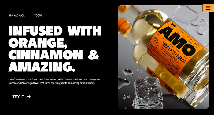 While logo and headings are in all-caps BN Dime, supported by Alternate Gothic, all body copy uses Halyard Display. Darden Studio’s sans serif features for text on the bottle labels and the website alike. There’s something special about seeing Halyard carry a brand like AMO Tequila, bold, front and center, without distraction.