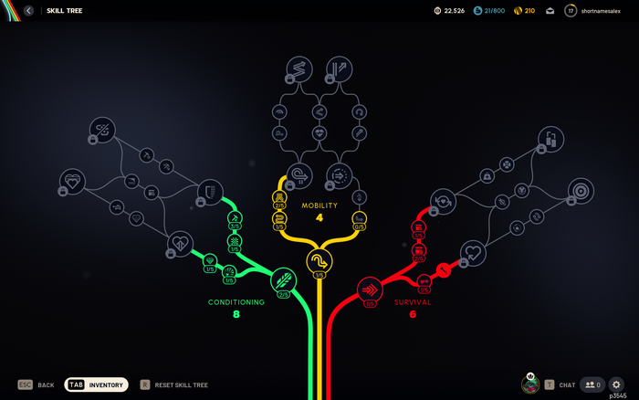 The three main skill trees, where players can upgrade their Raider'’s stats such as increased mobility and stronger resilience during combat