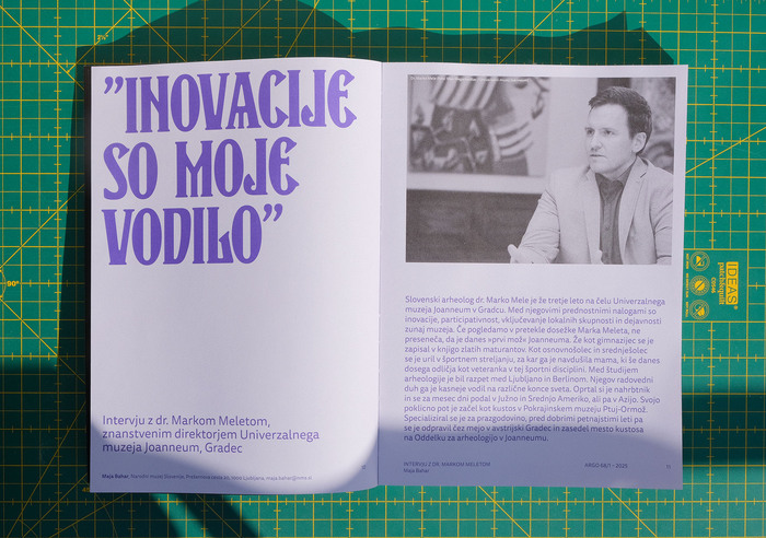 As headline typeface, Argo 2025 68/1 is using Sokoli, designed by Valentina Lupi and published by Dotless Type. It is paired with FF Tisa and FF Tisa Sans, both designed by Mitja Miklavčič and originally released by FontFont. The designer of the magazine is Ajdin Bašić.