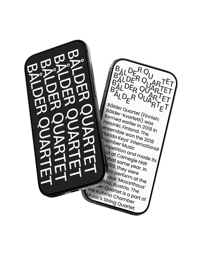 Bålder Quartet is a Finnish string quartet playing classical music together since their launch in 2018. In January 2026 they revealed a new visual identity, designed by David Matos / Shutupandance using Poppins throughout, plus Bloyd for the logo.