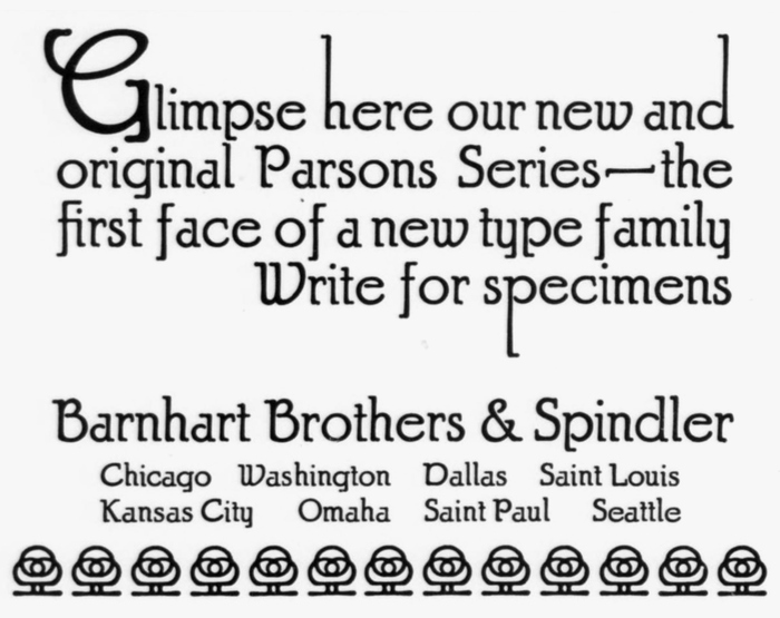 The Parsons Series as it was advertised by Barnhart Brothers & Spindler in the November 1917 issue of the Inland Printer