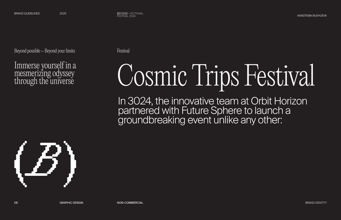 This identity for the fictive Cosmic Trips Festival was conceived as a student project in the Graphic Design program (4th semester) at TH Nürnberg.
