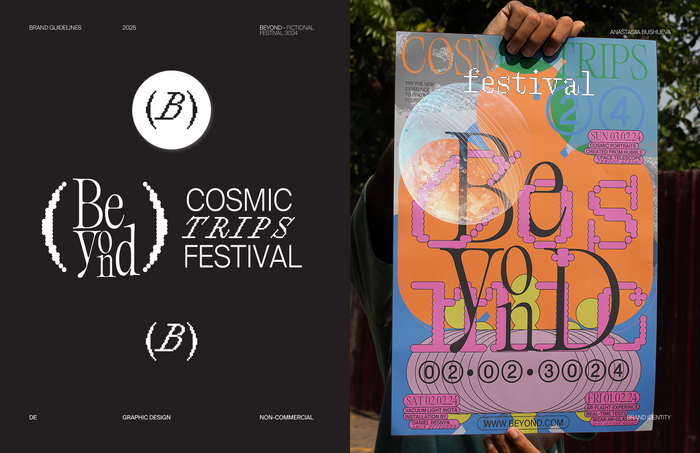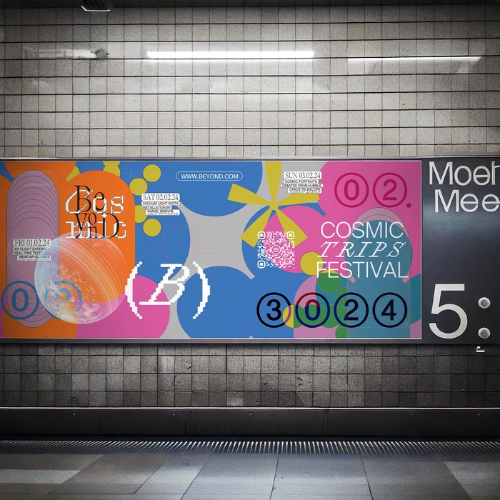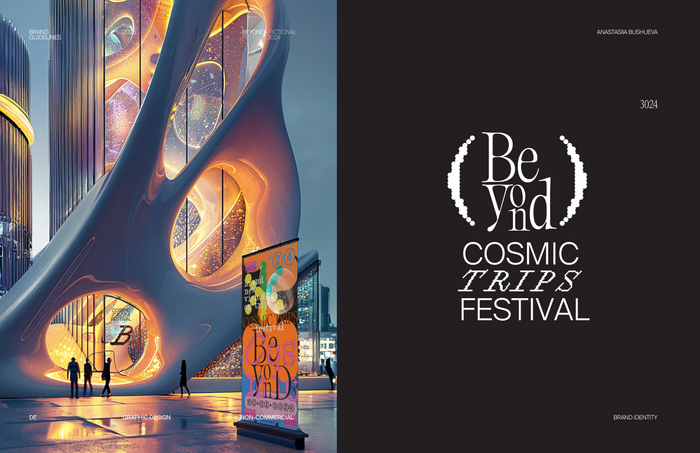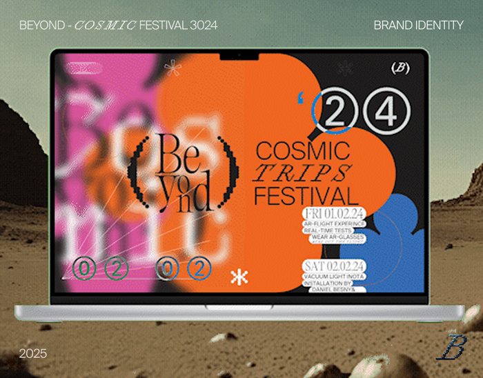 Designing the identity for Beyond – A Cosmic Trips Festival, I used AI tools to craft futuristic videos, merchandise, and media that brought my vision of cosmic exploration to life.