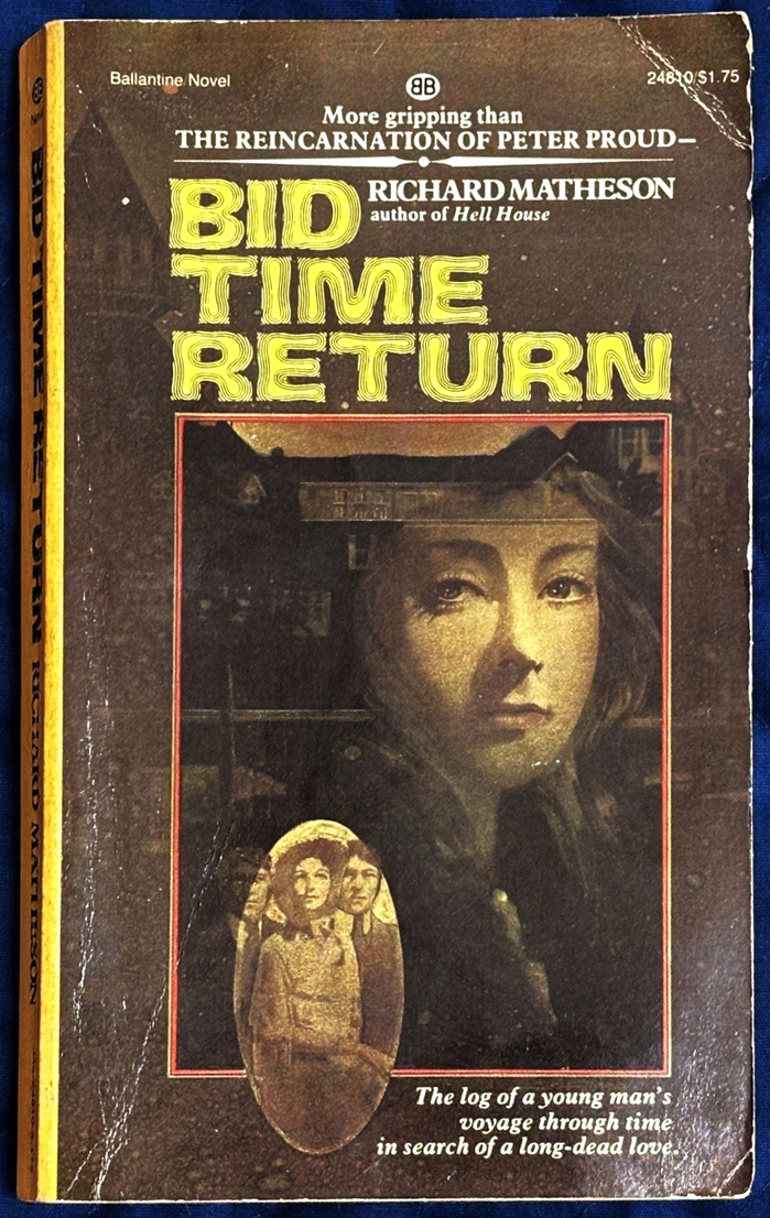 Bid Time Return is a 1975 science fiction novel by American author Richard Matheson. It concerns a man from the 1970s who travels back in time to court a 19th-century stage actress whose photograph has captivated him. In 1980, it was made into the film Somewhere in Time, the title of which was used for subsequent editions of the book.