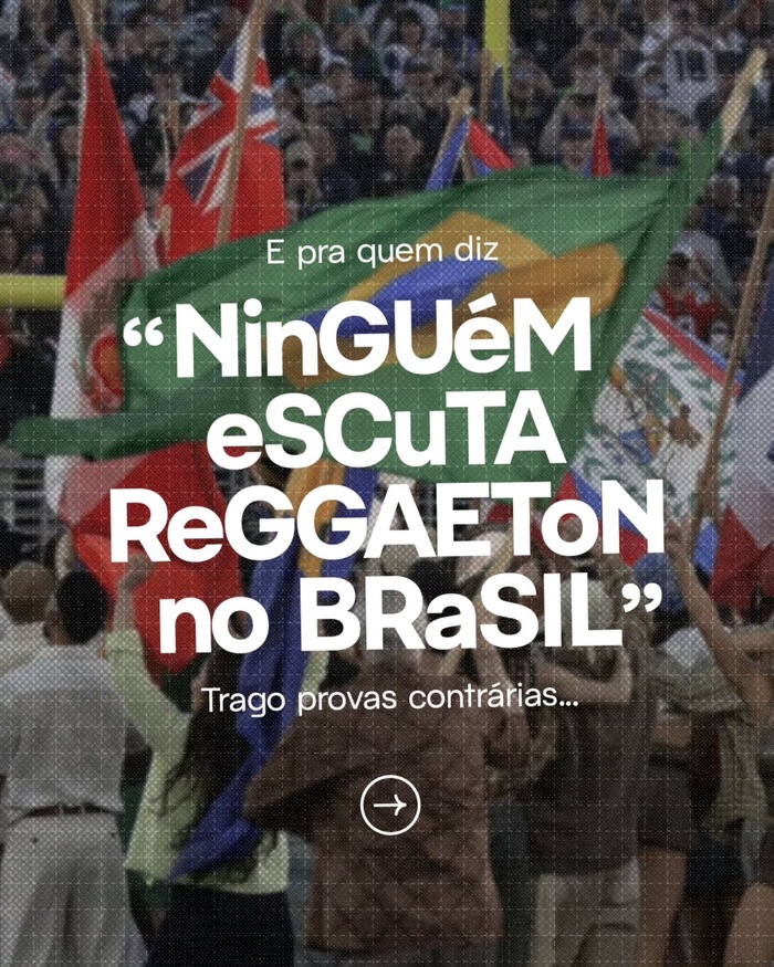 Since December 2025, the page has used Pacaembu and Discórdia as the main typefaces across its Instagram posts. The two appear consistently in titles, captions, and graphic elements. Both typefaces are released by Naipe Foundry.