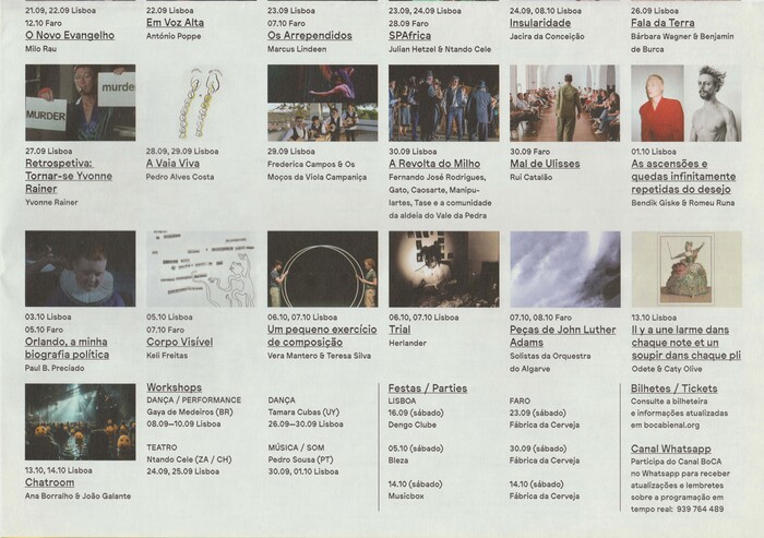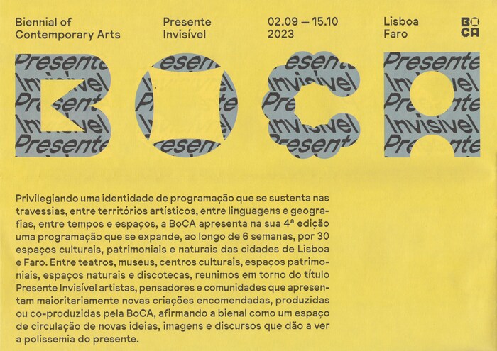 The fourth edition of BoCA (Biennial of Contemporary Arts) took place in 2023. Lisbon and Faro were the cities hosting a new and effervescent program from 2 September to 15 October.