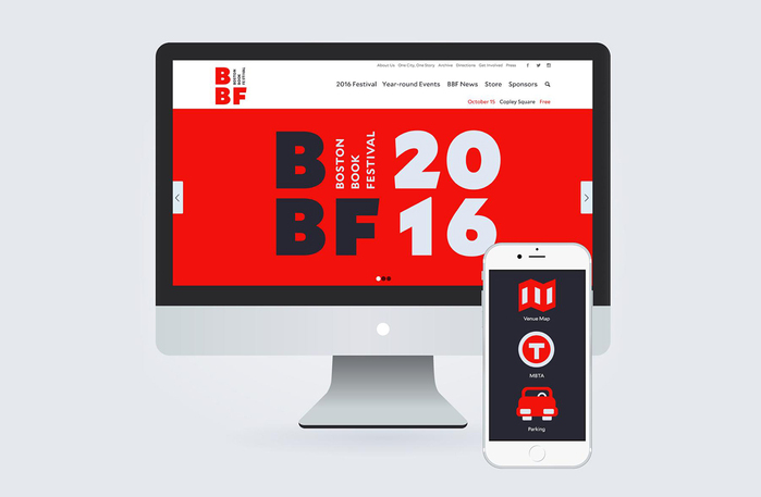 The festival rebranding included design concepts for a new identity with a flexible and adaptable logo. The visual approach to the logo took inspiration from the recognizable previous identity system, from book design, and from typography found in Boston. The full project included the design and production of promotional materials for the festival, responsive website, merchandise, venue signage and materials, a program guide and a promotional social media campaign.