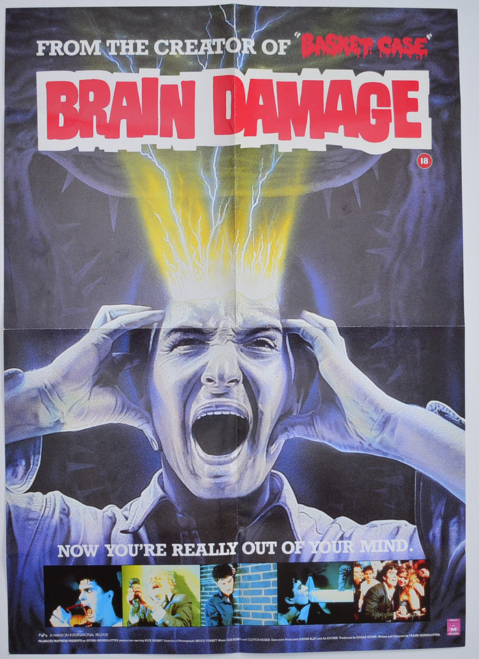 Brain Damage is a 1988 American comedy horror film written and directed by Frank Henenlotter. It stars Rick Hearst in his debut acting role as Brian, a young man who becomes acquainted with a talking parasite known as Aylmer (voiced by John Zacherle) that injects him with an addictive fluid that causes euphoric hallucinations; in return, Aylmer demands that Brian allow him to feed on the brains of other humans.