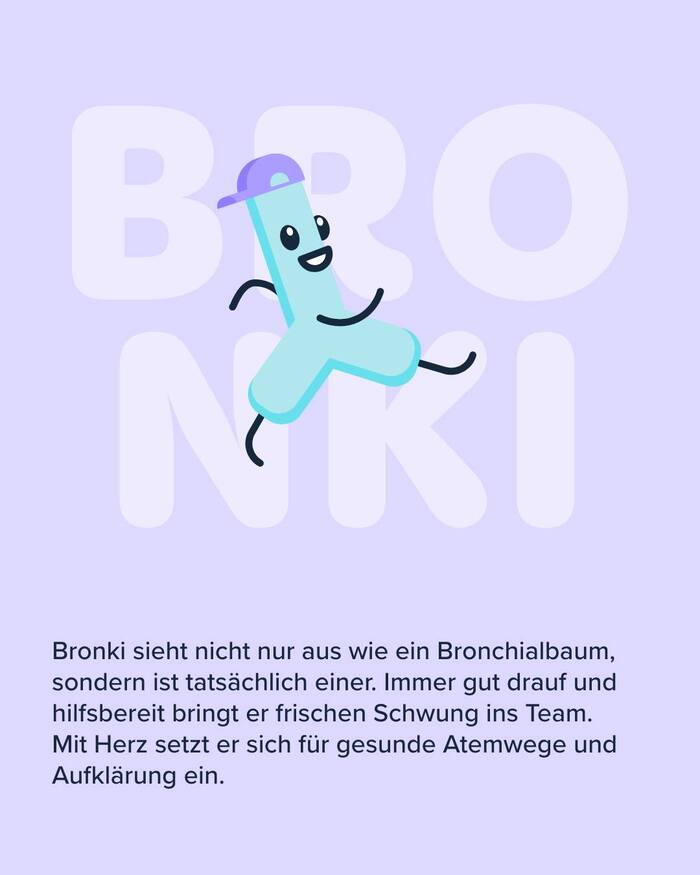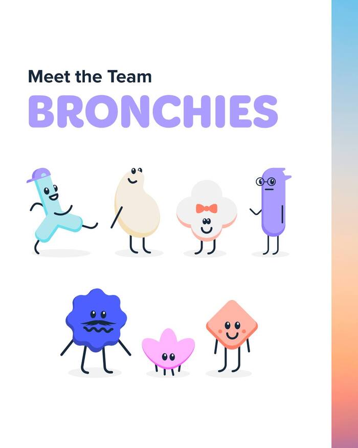 Kit is also used for other touchpoints. Shown below are the “Bronchies”, a team of brand ambassadors in the form of cute characters related to horses and their lungs. Names in bold caps from Kit Rounded are supported by copy in Proxima Nova.