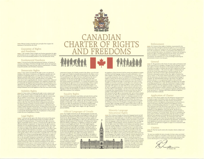 Canadian Charter of Rights and Freedoms, 1982