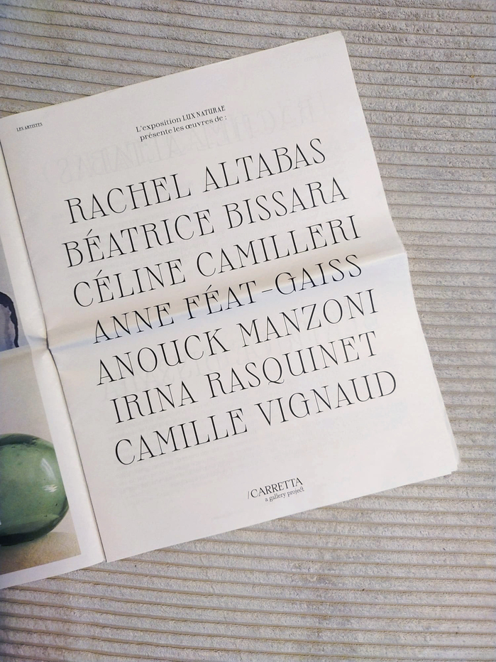 Visual identity of Carretta, a nomadic gallery run by Pauline Carretta. Designed by Charlotte Froget using Solæ by Gwennina Moigne and Sprat by Ethan Nakache.