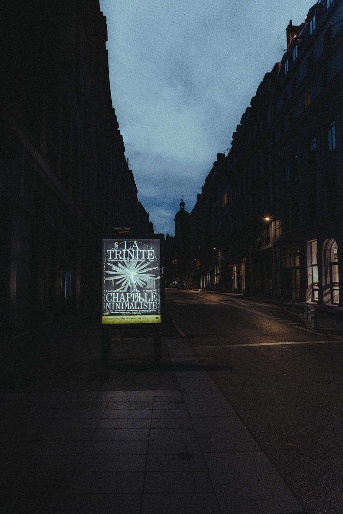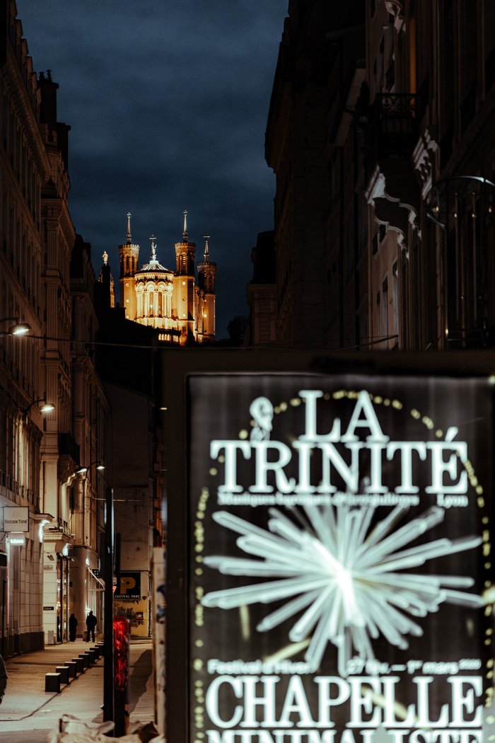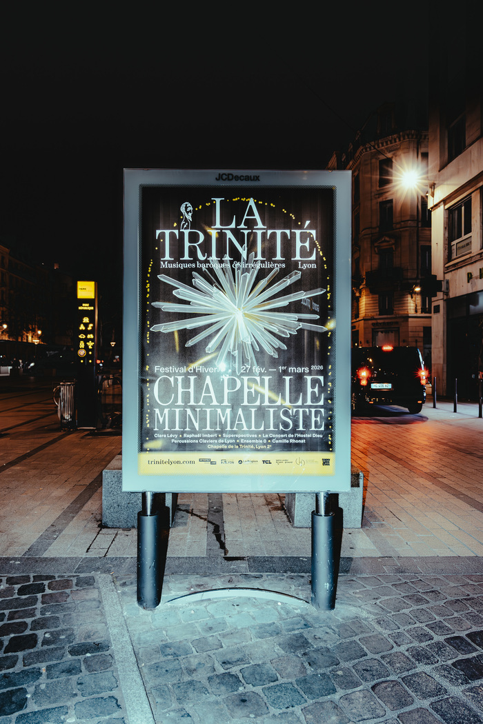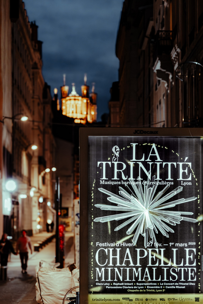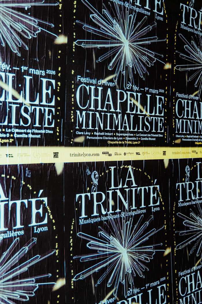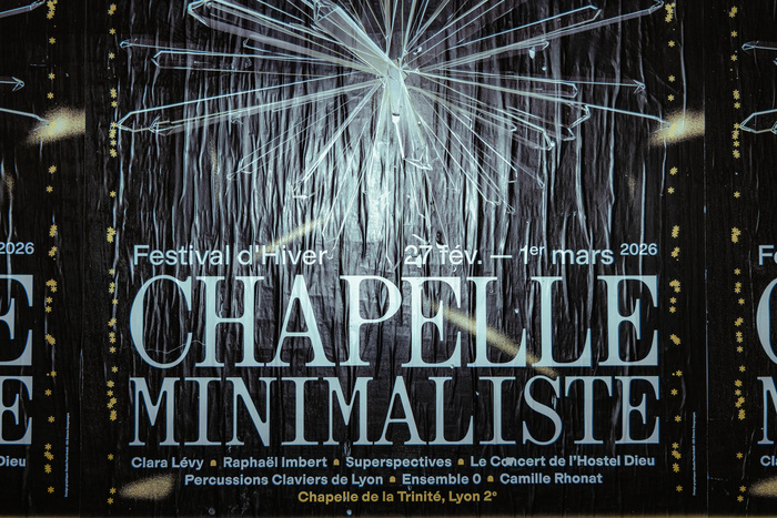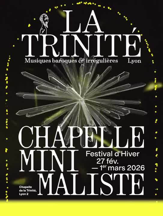 Poster for Chapelle Minimaliste, the winter festival organized by La Trinité (from 27 February to 1 March 2026 at the Chapelle de la Trinité, Lyon, France).