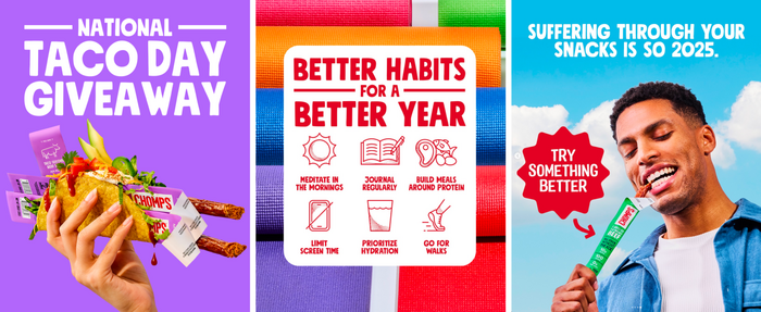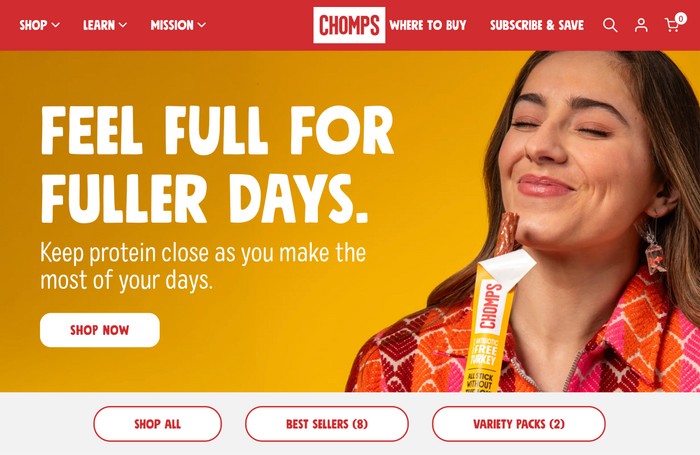 New York-based Zero Studios reimagined Chomps with a bold, cohesive identity built to dominate the snack aisle and scale across digital and retail environments. From packaging to social media, the work balances immediacy with clarity. The direct messaging, high contrast color, with a playful tone and visual presence position the brand as energetic and a little bit rebellious.