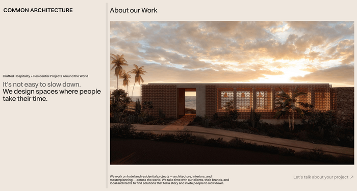 Beyond the logo, what defines Common Architecture is its operating criteria: clarity, legibility, and consistency. Every decision serves the content and readability of the project, reducing noise and avoiding unnecessary gestures.