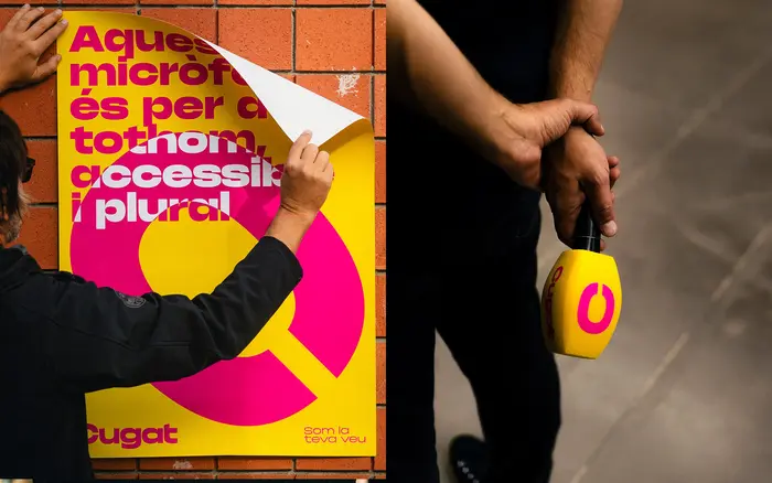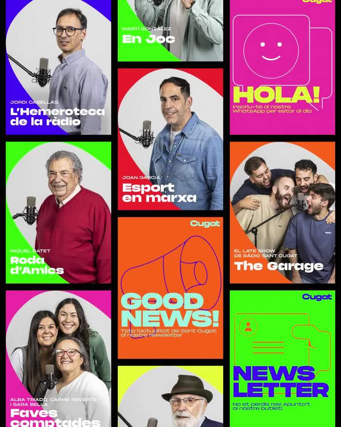 Cugat Mèdia’s identity system – crafted by ESIETE – reimagines public media branding, think radio, TV, podcasts, and digital press. A minimalist typographic gesture unveils a microphone, honoring Ràdio Sant Cugat's 43-year heritage while symbolizing connection.