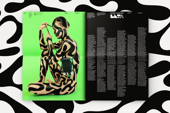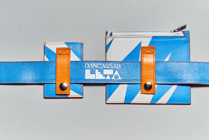 Directly inspired and interpreted by how Leta preferred to carry her belongings, these pieces can be interchangeable and layered and mixed and matched as much as you please! The whole collection is created using material from previous Dancassab collections. The resulting range of six styles includes a crossbody, phone sling, chest belt, waist belt with detachable compartments, and two tote styles. We created three graphic patterns for the collection: Blob, Bolt, and Protozoa (to be launched later), combining Leta’s postmodernist/maximalist influences with Dan Cassab's 60s rock n’ roll influences.