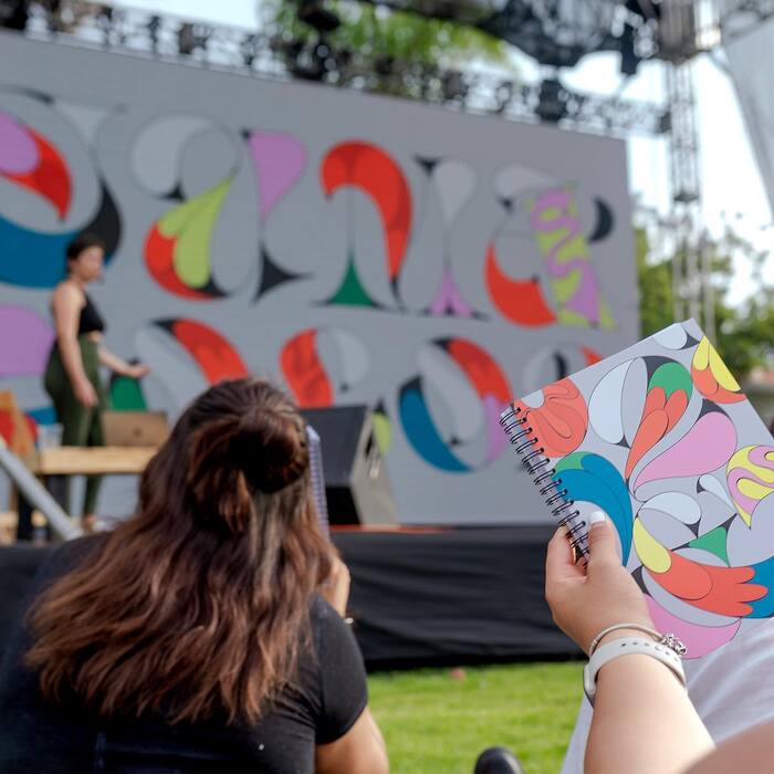 In the 2023 edition, held in April of that year, the keynote speaker was Brazilian lettering artist Cyla Costa and the festival’s swag bag featured a sketchbook with her font Juma on both the front and back covers. This is, in all likelihood, the first public use of the font, which had just been released by Naipe Foundry in December 2022.