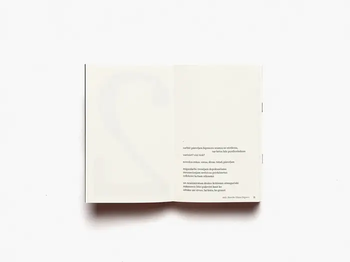 At the end of 2024, Riga-based publisher Talka Books issued Divas otrās / Две вторых, a collection of poems in two languages by Semjons Haņins (Семен Ханин), a participant in the Orbit text collective. The book’s typography in both Russian and Latvian is catered by Kazimir Text designed at CSTM Fonts. The double-sided book, which resembles the construction of a magic wallet is designed by Esther Betija Grāver.
