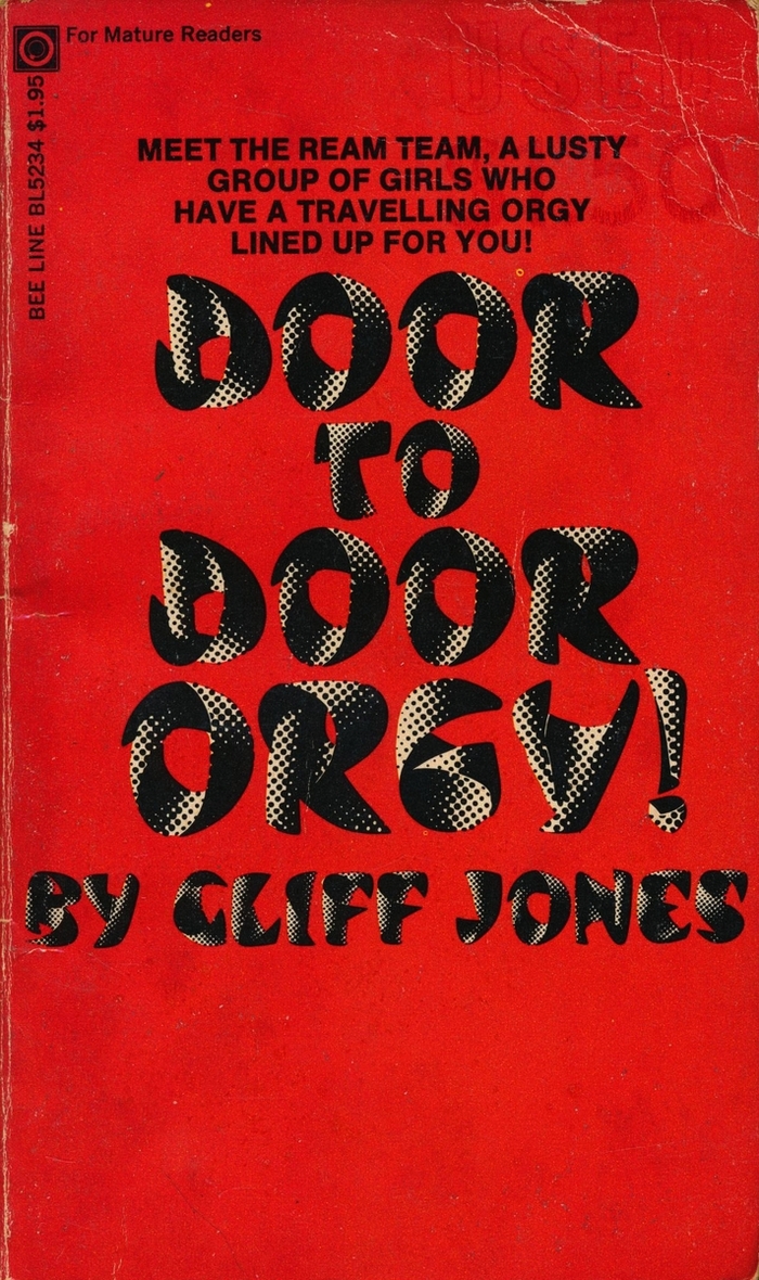 Door to Door Orgy! is an adult novel by Cliff Jones, published in 1974 by Bee-Line Books.