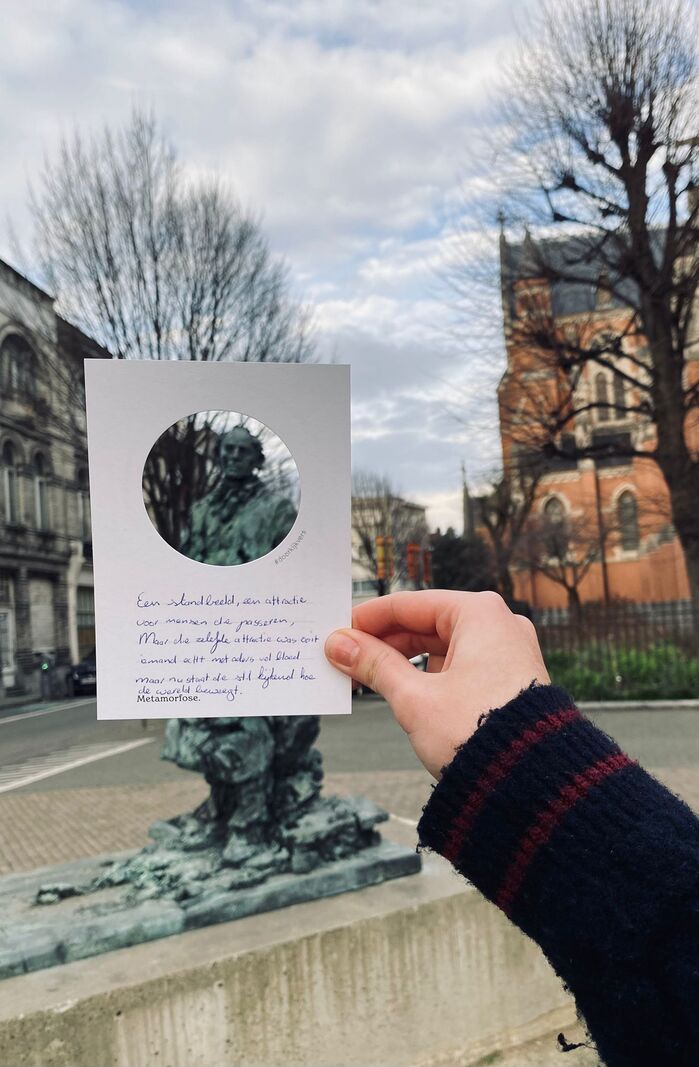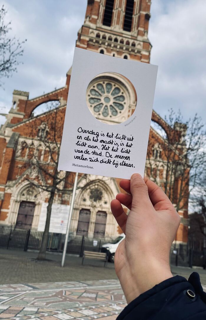 #Doorkijkvers (“see-through verse”) is a self-initiated participatory poetry project created for Poëzieweek 2026. The project was developed and realized in collaboration with Creatief Schrijven vzw and printer Zwartopwit.