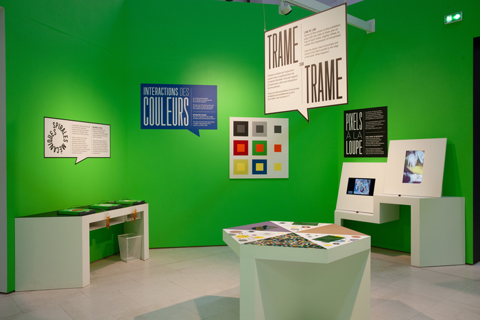 The exhibition design was created by French graphic designer Antoine Groborne. He used the typeface Garaje (Thomas Huot-Marchand, 205TF) for the titles and Roboto for the text.