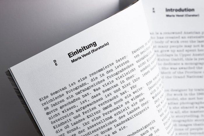 Elfie Semotan showcases her fashion photographs, in addition to her still lifes, portraits and staged free works in this catalog, using Droulers and Brut Grotesque.