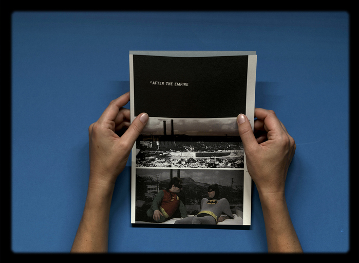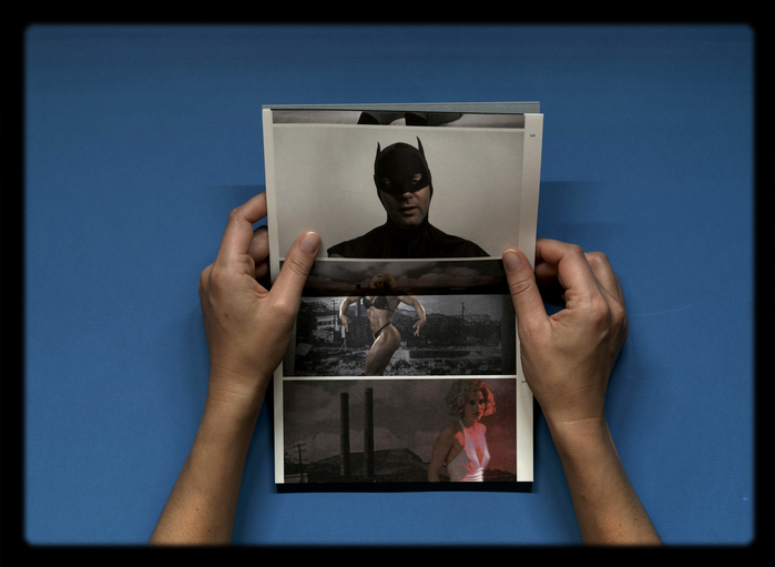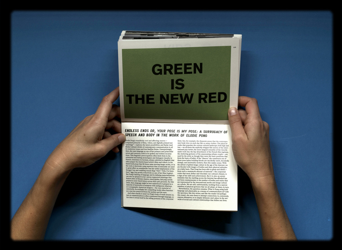 Reflecting the 16:9 and 4:3 formats of Pong’s video pieces, the selected film stills weave through the publication as a continuous visual current. Extending beyond the confines of the page, they are punctuated only by title cards that evoke the silent interruptions of early cinema.