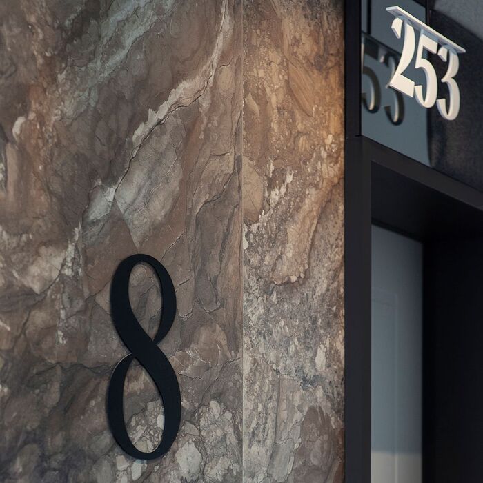 Albra Sans by ULTRA KUHL plays a special role in the signage design of this space. It is part of the comprehensive Albra collection with a very wide range of styles. The chosen variation of Sans is characterised by an elegant, interesting details of the individual letters and clear contrasts, which corresponds with the graphic sign of the development.