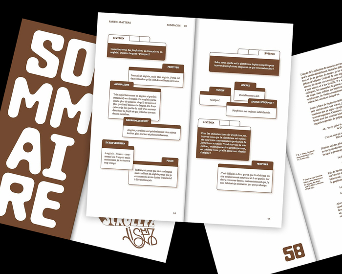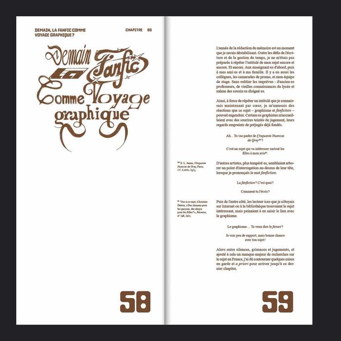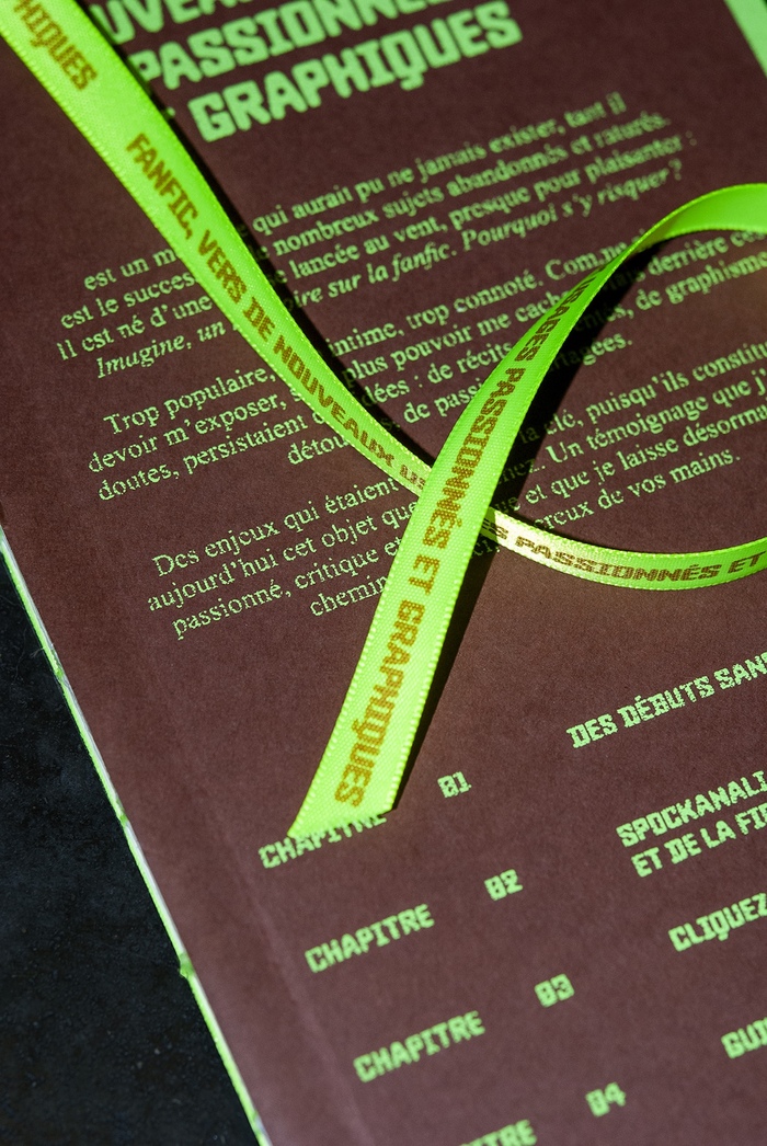 Fanfic. Vers de nouveaux usages passionnés et graphiques (“Fanfic, towards new passionate and graphic uses”) is a book made by Laurie Liviero as thesis project at Ésac Cambrai in 2025. It was designed using Baste (from Lift Type) and Times New Roman.
