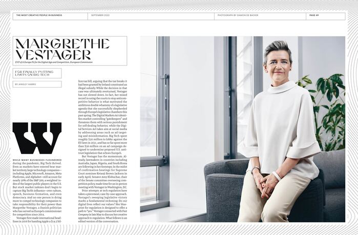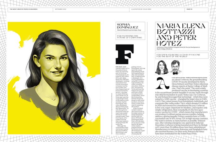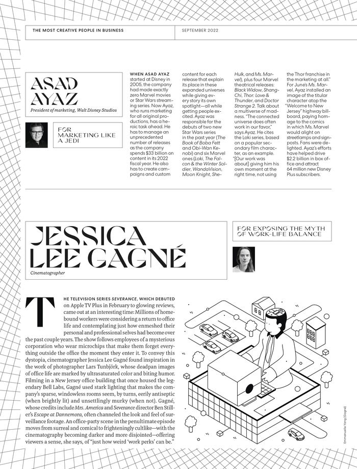 For the September 2022 issue of Fast Company, Creative Director Mike Schnaidt assembled a refined editorial palette to present the magazine’s annual “Most Creative People in Business” list, honoring innovators across technology, healthcare, entertainment, and design.