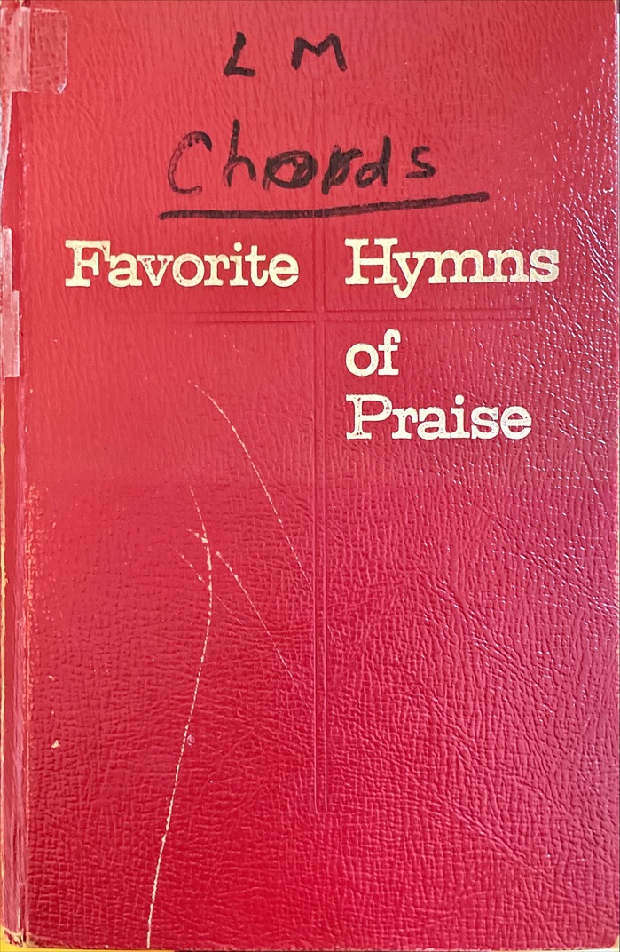 This hymnal with 19th century gospel songs was first published in 1967 by the Tabernacle Publishing Company, Wheaton, Illinois. Over the years, various editions have been issued, in different colors and cover materials, and also by others like Standard Publishing from Cincinnati, but always with an embossed cross. The title is set in a wide Clarendon variant that was made available by Lettering Inc. around 1956, as No. 1083. The book is still in print today.