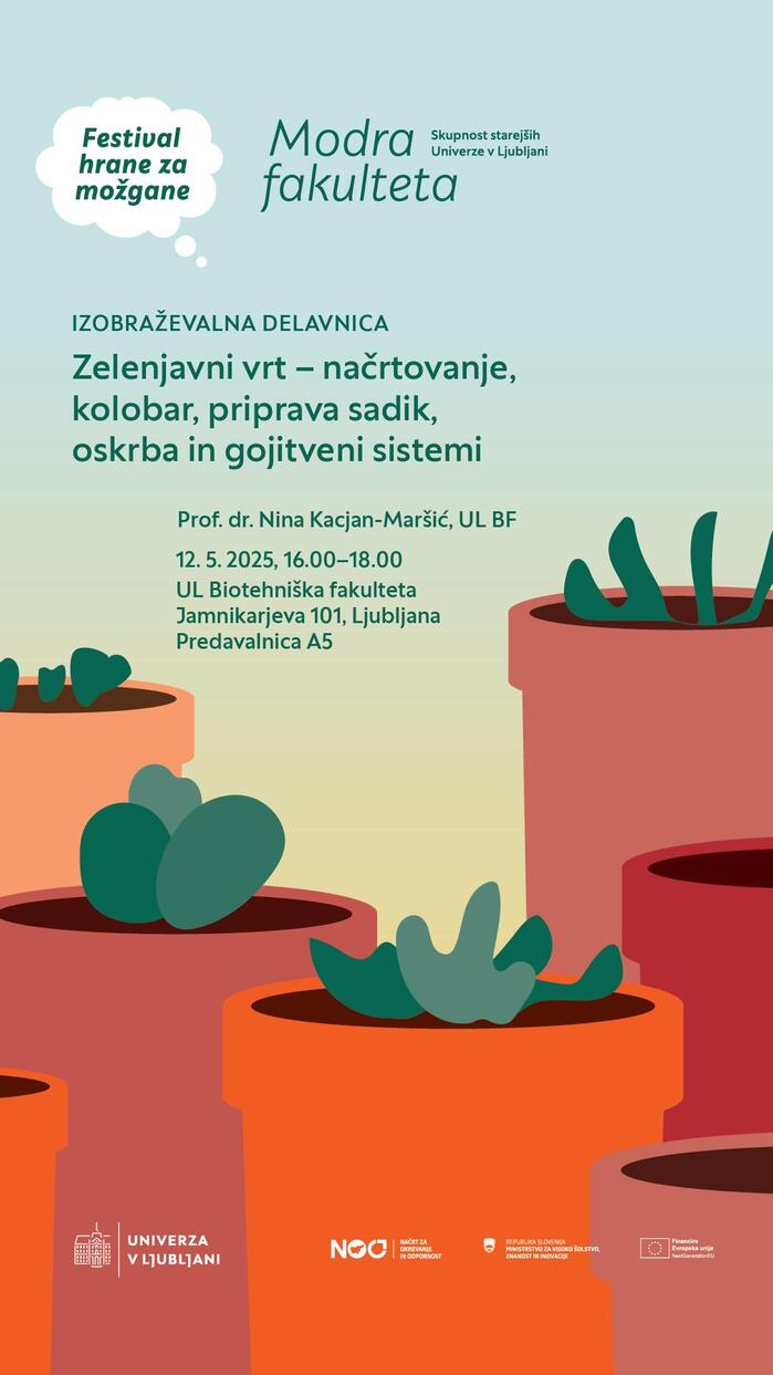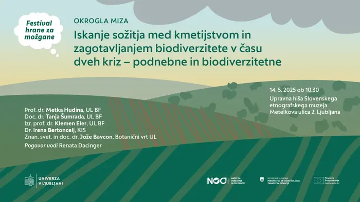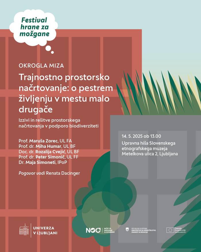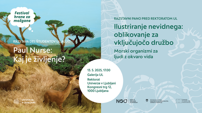 Under the name Festival hrane za možgane (“Food for the Brain Festival”), the University of Ljubljana organises cycle of events which, through workshops, exhibitions, and roundtable discussions, aims to open a dialogue on the biodiversity crisis and sustainable development. The festival brings together researchers, students, and the wider public, and highlights the importance of knowledge, collaboration, and concrete actions for nature conservation – including in urban environments. Shown here are the designs for the 2024 and 2025 editions.