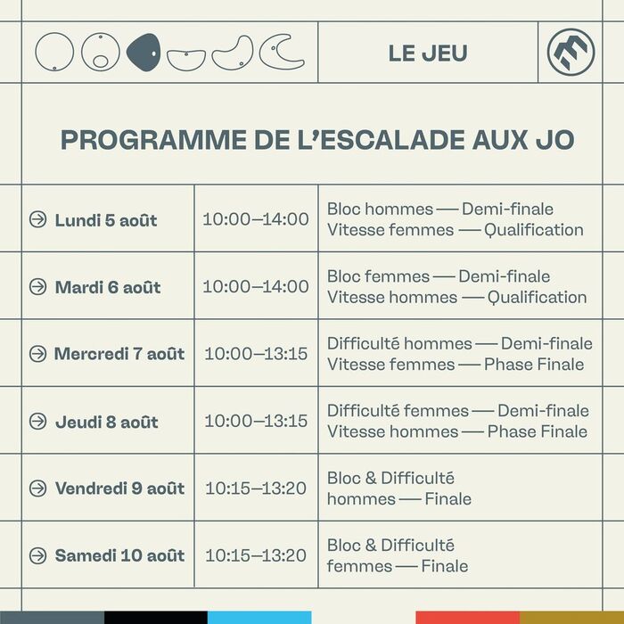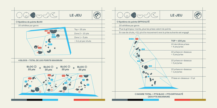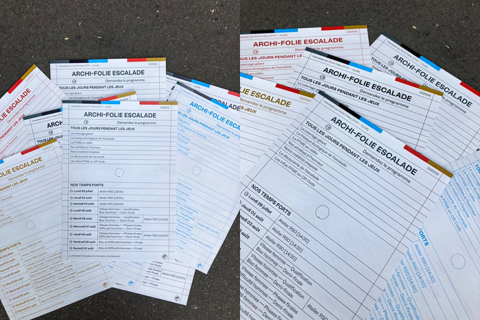 This communication was designed ahead of the 2024 Olympic Games in Paris to introduce sport climbing to the general public and to support its promotion in the Olympic context, during an event organized in France. Ginka (from lift type) is an important element of the project, used as the sole font for both title and secondary information, thanks to its versatility.