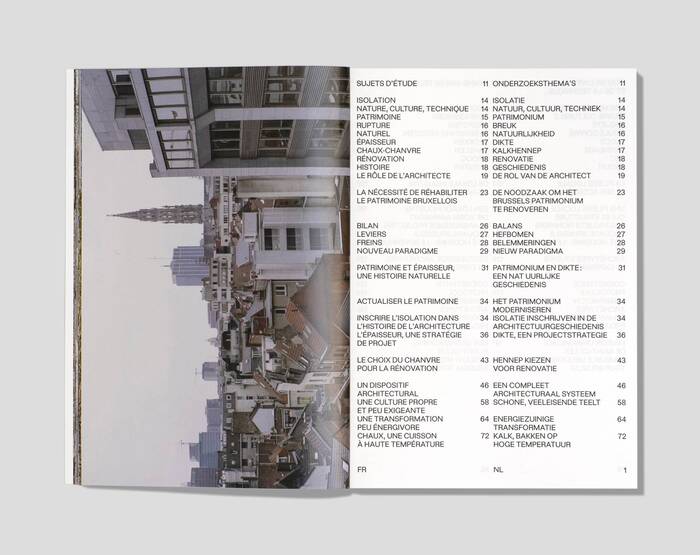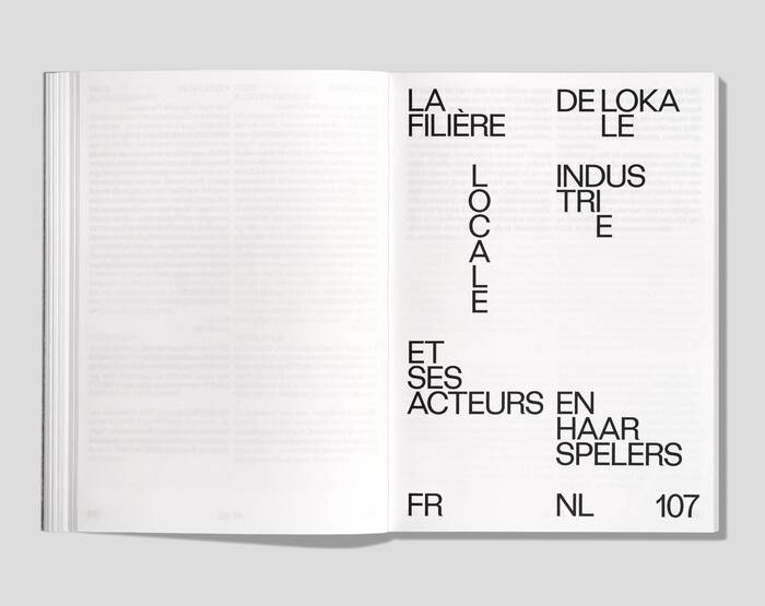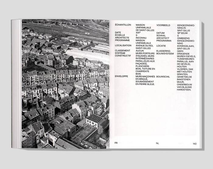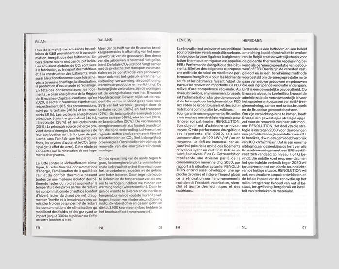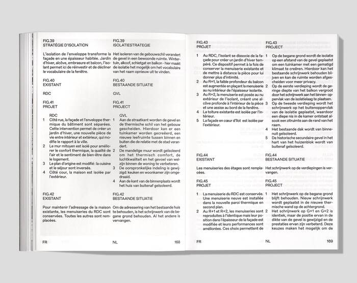 The bilingual publication (French and Dutch) was designed by République Studio and is typeset in HB Goblet A, an upcoming typeface by HB Type. It has 256 pages measuring 144×200 mm. Form Follows Insulation was printed by IPM Bruxelles on Munken Print White and published by New Moon. ISBN 978-2-9588079-2-4