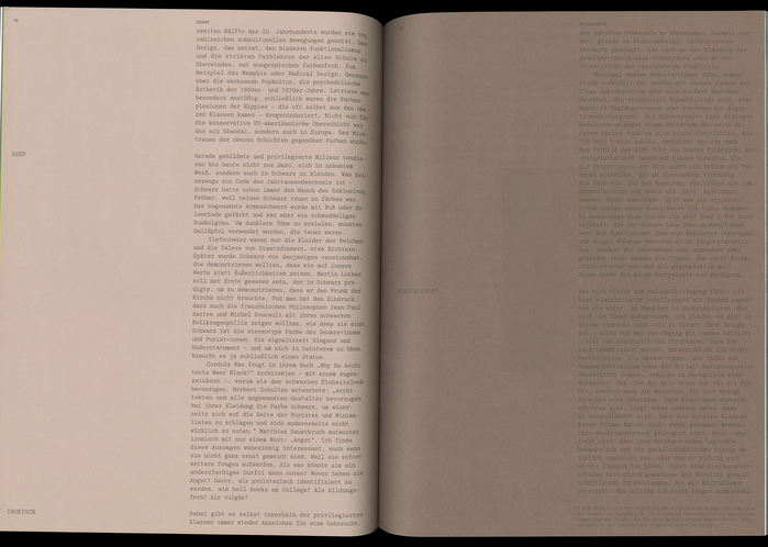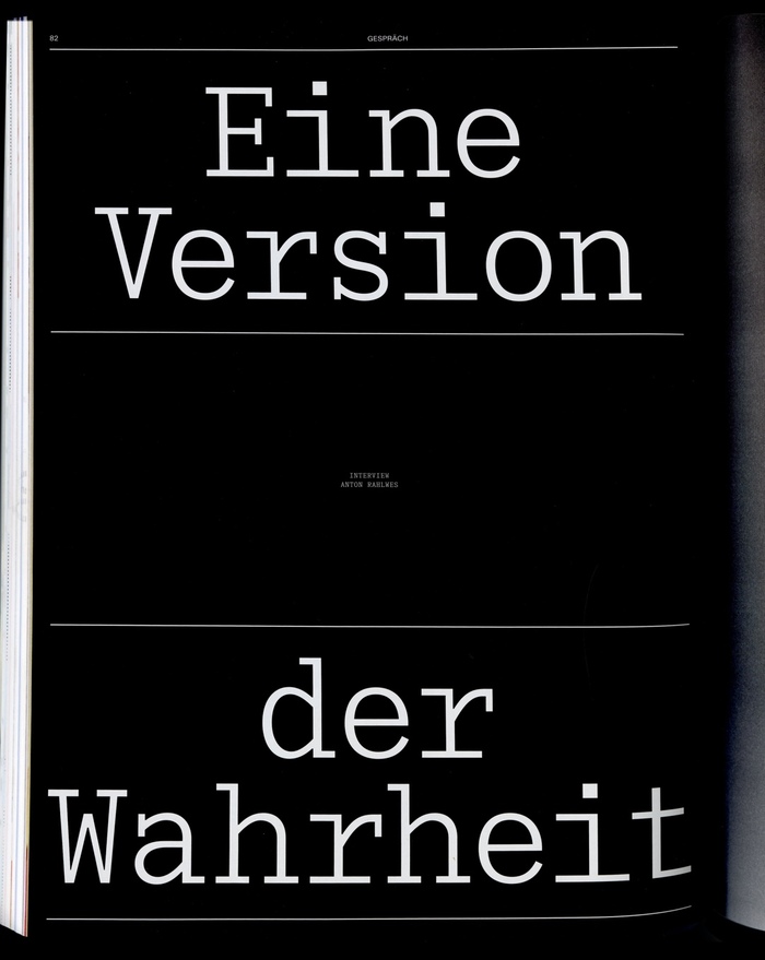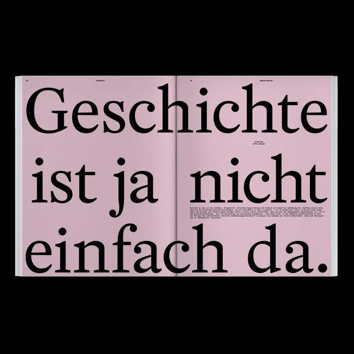 In addition to the new house typeface, two additional fonts have been introduced: the monospaced “Literature” [now named OO Arketa] by Laura Csocsán and Samira Schneuwly, and the serif “Rosart” by Katharina Köhler, distributed by Camelot Typefaces. These fonts add variety to recurring sections and allow for occasional visual breaks.
