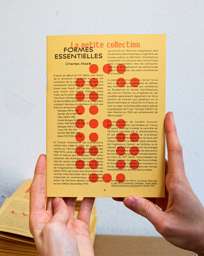 This is the sixth issue of La petite collection, designed by Bureau Roman Seban. As with every issue, the number is printed on the cover and the colophon on the back cover, typeset in Bertin (variable font), a typeface available from 205TF. The body text is set in Axo by the author, Charles Mazé, available from Abyme.