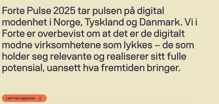 Forte is a consulting company with offices in Oslo, Kraków, Katowice, Berlin, Munich, and Copenhagen. There are websites in English, German, Polish, and Norwegian, all using Volksans for the typography. Shown here are details from the Norwegian version.