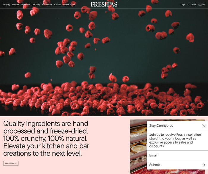 Para by Rellence is used for the logo and rebrand of Fresh As, the innovative home of premium freeze-dried ingredients. The sans is TT Commons by TypeType.